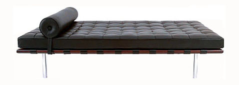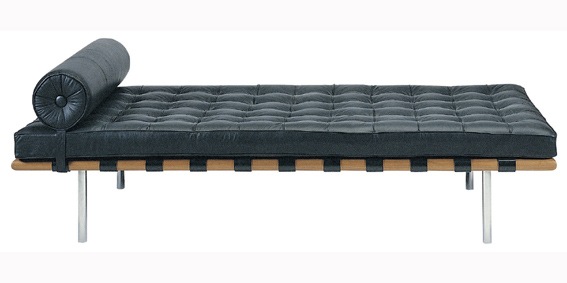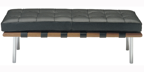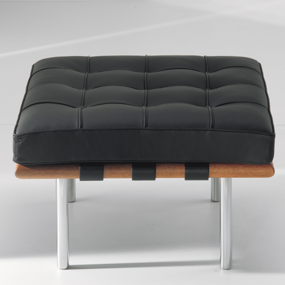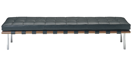 Day bed, ottoman and two size benches with frame in solid walnut-stained wood,
