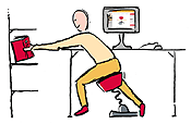 towards the table and bend his spine in order to work - the "swopper's"