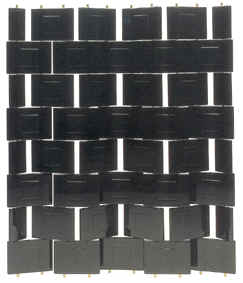 Screen made of wooden panels lacquered in black with a high gloss finish.